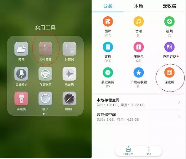 保密柜在手机“文件管理”app里,打开之后点击分类或本地,里面可以看到保密柜选项。